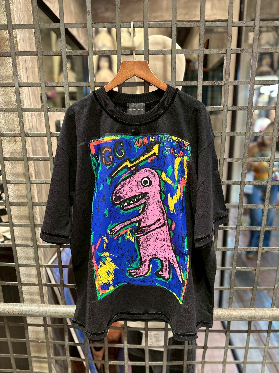 “Ruay” — the Thai word for richness and prosperity — becomes more than a wish; it takes form in this fantastical print. A winged black dinosaur dances midair, surrounded by golden coins that bear smiling faces, floating like lucky charms through the sky. The clouds puff like dreams in motion, and a single pyramid grounds the fantasy with ancient symbolism of power and mysticism.