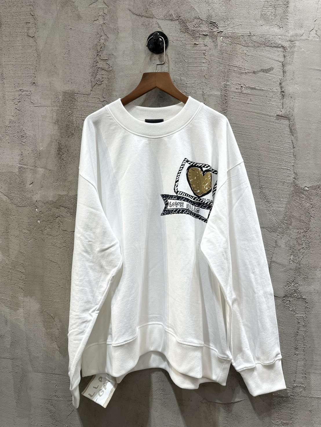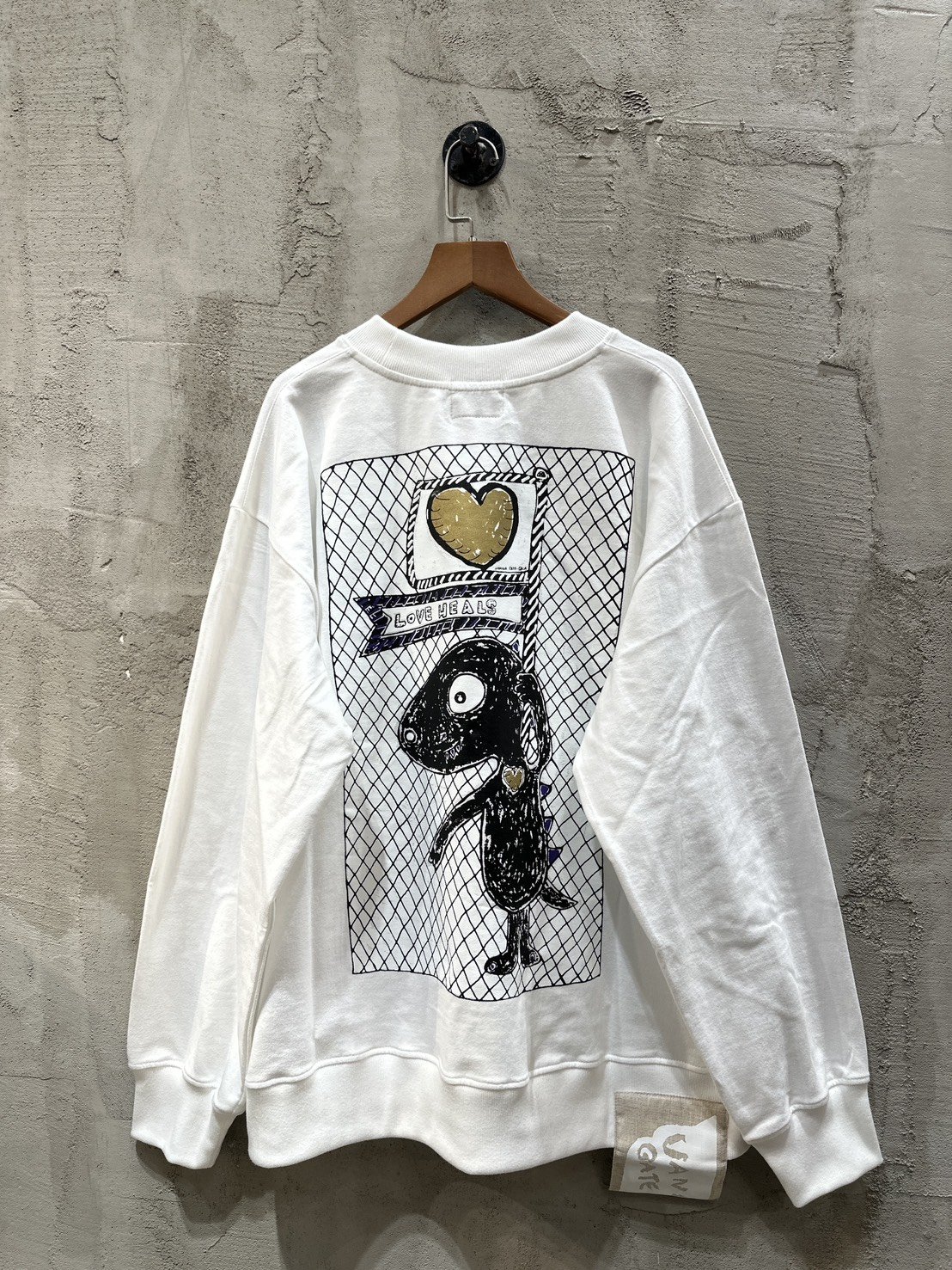 Loose fit sweater with bold hand-printed artwork. A structured silhouette softened by stillness. This top carries the original hand-drawn artwork—transformed into wearable art through silkscreen printing on soft terry cotton.